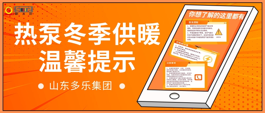 多樂斯米茨熱泵冬季供暖溫馨提示開機(jī)前準(zhǔn)備1、開機(jī)前,需檢查電源是否正常,接線是否緊固。2、先接通電源待機(jī)(通電不開機(jī)),讓壓縮機(jī)伴熱帶預(yù)熱6個(gè)小時(shí)以上再開機(jī),防止對壓縮機(jī)造成損壞。注意事項(xiàng)1、檢查管道、水泵、…